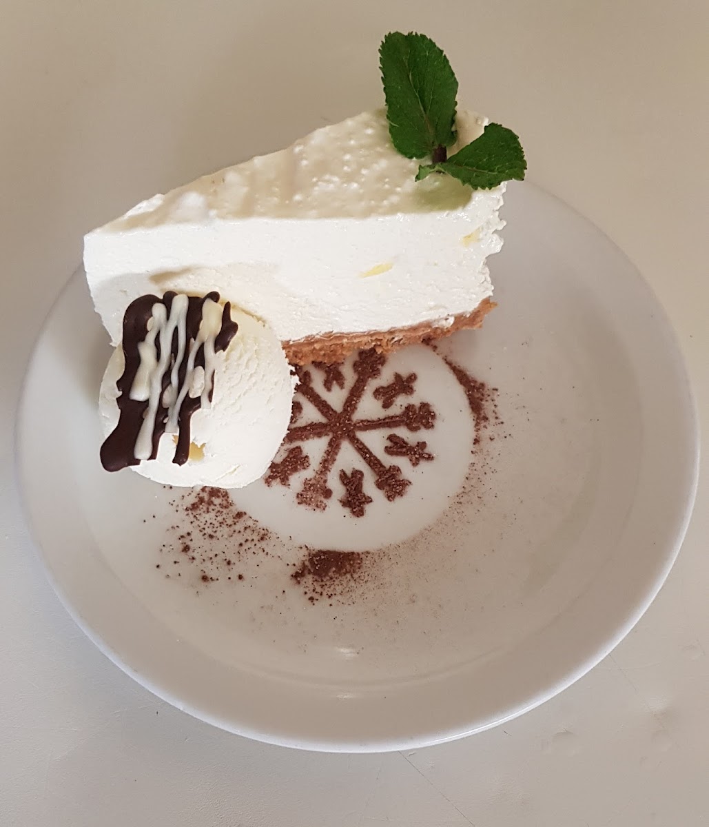 I had fish and chips with side salad for main course and crunchy toffee sundae for sweet. The fish was really big and the batter was crispy and not greasy. The waitress was friendly and made you feel at home. I don't normally have a sweet but was tempted and wasn't disappointed, it was delicious. I left the premises full after having the best meal out for a long time. I would definitely recommend you try a meal here.